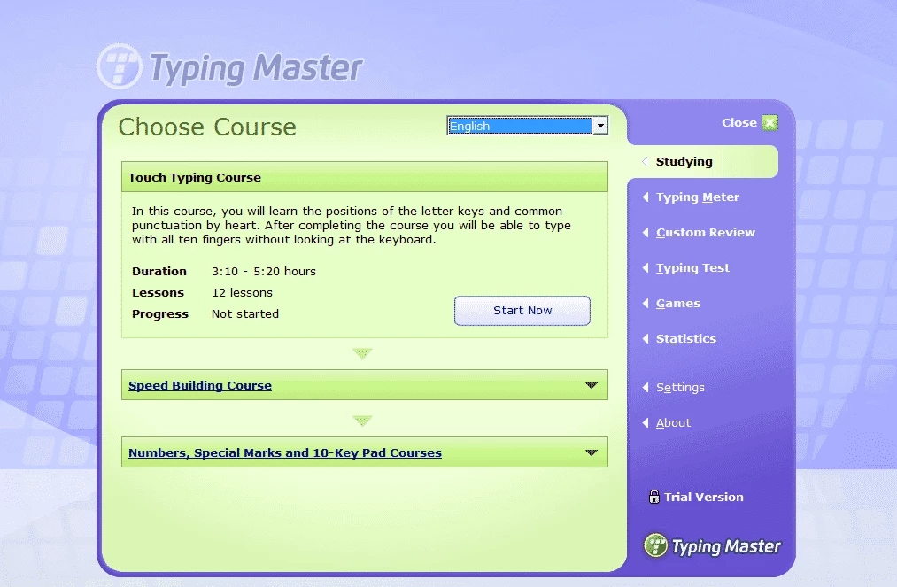 يمكنك التدرب على الكتابة باستخدام التدريب المنظم متعدد اللغات، حيث يوفر التطبيق خيارات متنوعة، بدءًا من دورة أساسية للأطفال، وتمارين بناء السرعة، والكتابة العادية والسريعة، والأرقام، والأحرف الخاصة، ولوحة المفاتيح الرقمية. يُعد هذا التطبيق من أفضل الخيارات للمبتدئين والمحترفين على حد سواء، حيث يُحسّن الدقة، ومعدل الكلمات في الدقيقة، ويتطور تدريجيًا ليُطور مهارات الكتابة الكاملة على لوحة المفاتيح.